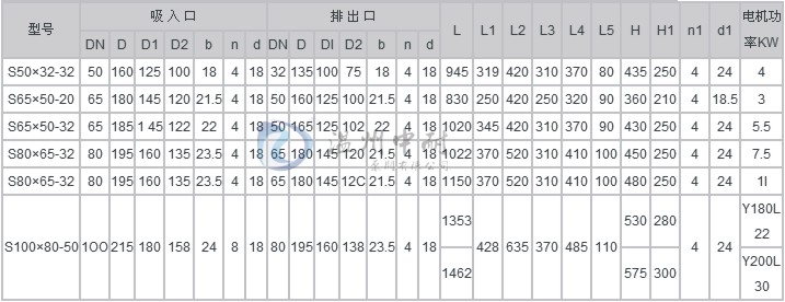 流量:3.2~50m3/h,揚(yáng)程:12.5~32m,轉(zhuǎn)數(shù):2900r/min,功率:0.75~7.5KW,口徑:25~80mm,使用溫度:<100℃
